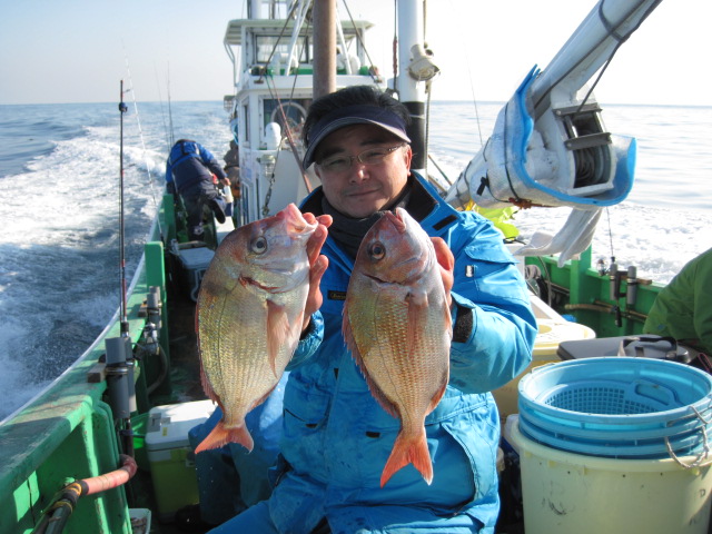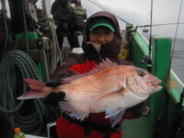 ハナダイは入れ食いでしたが、真鯛良型は型でした><www