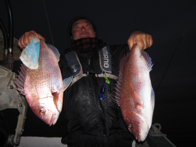 ハナダイは船中150以上釣れ、真鯛混じりでした!やっぱり夕マ詰めですね!!!4.0kg、2.0kg、1.2kg、0.8kgと大物テンヤ飲まれも流石マジックですね!